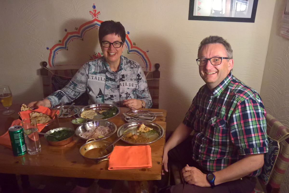 Nach einer Zwischenlandung in Dubai, Ankunft Ortszeit 14:45 Uhr in Neu Delhi (+ 3,5 Stunden Zeitverschiebung). Der im Voraus gebuchte Transfer funktioniert leider nicht, so nehmen wir ein Prepaid-Taxi zum Hotel im Botschaftsviertel von Neu Delhi. Ziemlich müde beziehen wir unser Zimmer und genießen am Abend unser erstes indisches Essen.