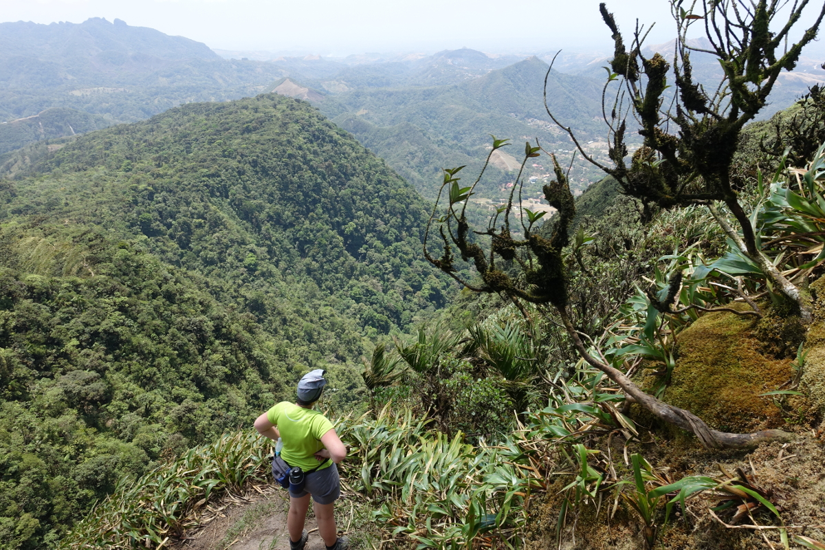 Ein anderer Gipfel des Kraterrandes ist der Cerro Gaital, der sich für uns als Kletterpartie entwickelt hat. Zum Aussichtspunkt (EL Mirrador) sind es nur 30 Minuten, aber dann geht es zum Gipfel steil bergauf. An machen Stellen sind Kunststoff- bzw. Metallseile als Aufstiegshilfen angebracht. Insgesammt sind wir 3 1/2 Stunden unterwegs gewesen. Zum Teil war der Weg am Grat nur einen halben Meter breit und auf beiden Seiten ging es steil hinunter. Durch die Vegetation war der beidseitige Abgrund nicht als solcher ausmachbar und für unsere Psyche war es ein ungefährlicher Weg ohne Höhenangst bekommen zu müssen. Vom Gipfel konnten wir sogar den Pazifik erkennen. Also wer Herausforderunge mag, ist auf diesem Weg äußerst gut bedient und die Hängematte wartet schon!