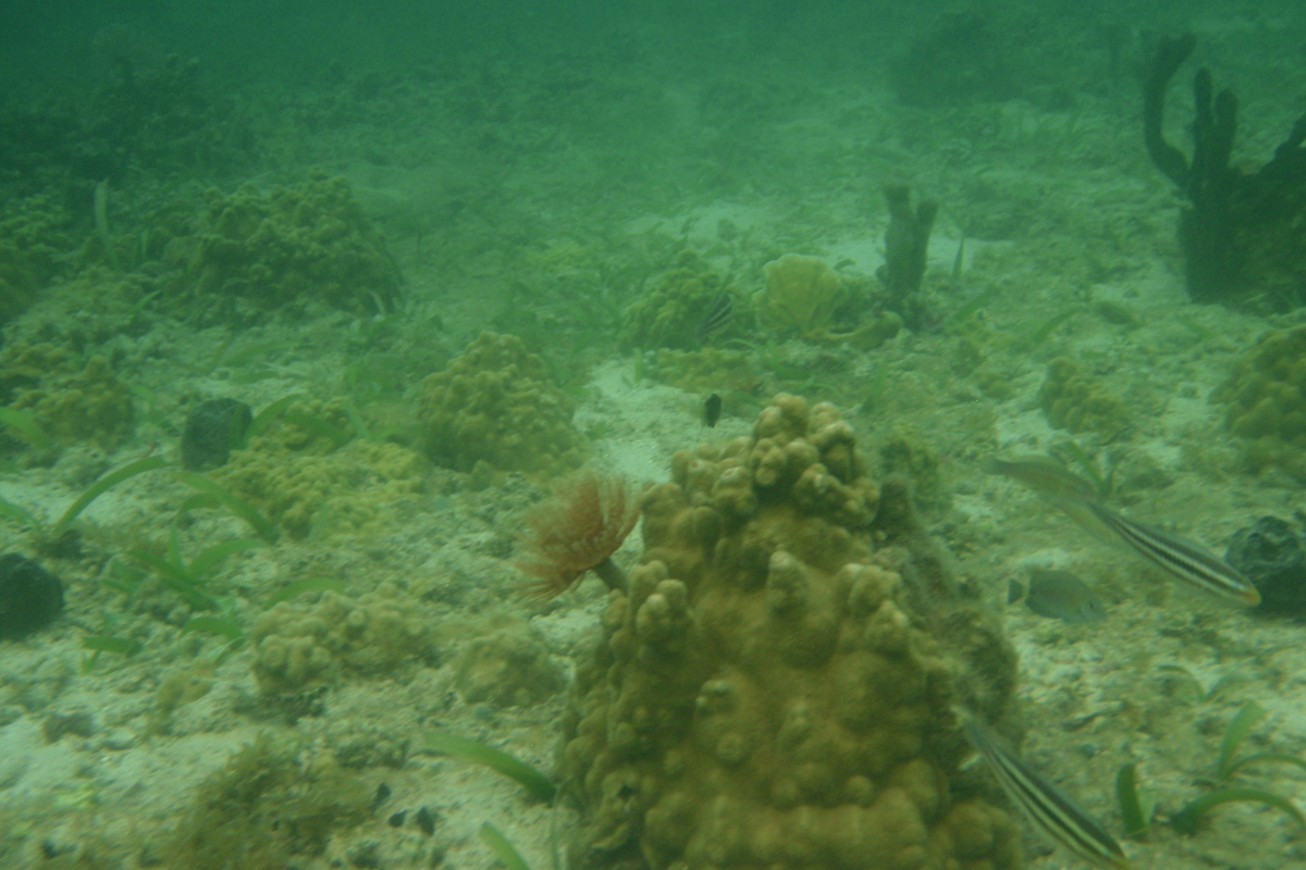 Zu Hause vor der Terrasse spazieren wir im Grünen. Hier in Punta Caracol machen wir Unterwasserfotos!